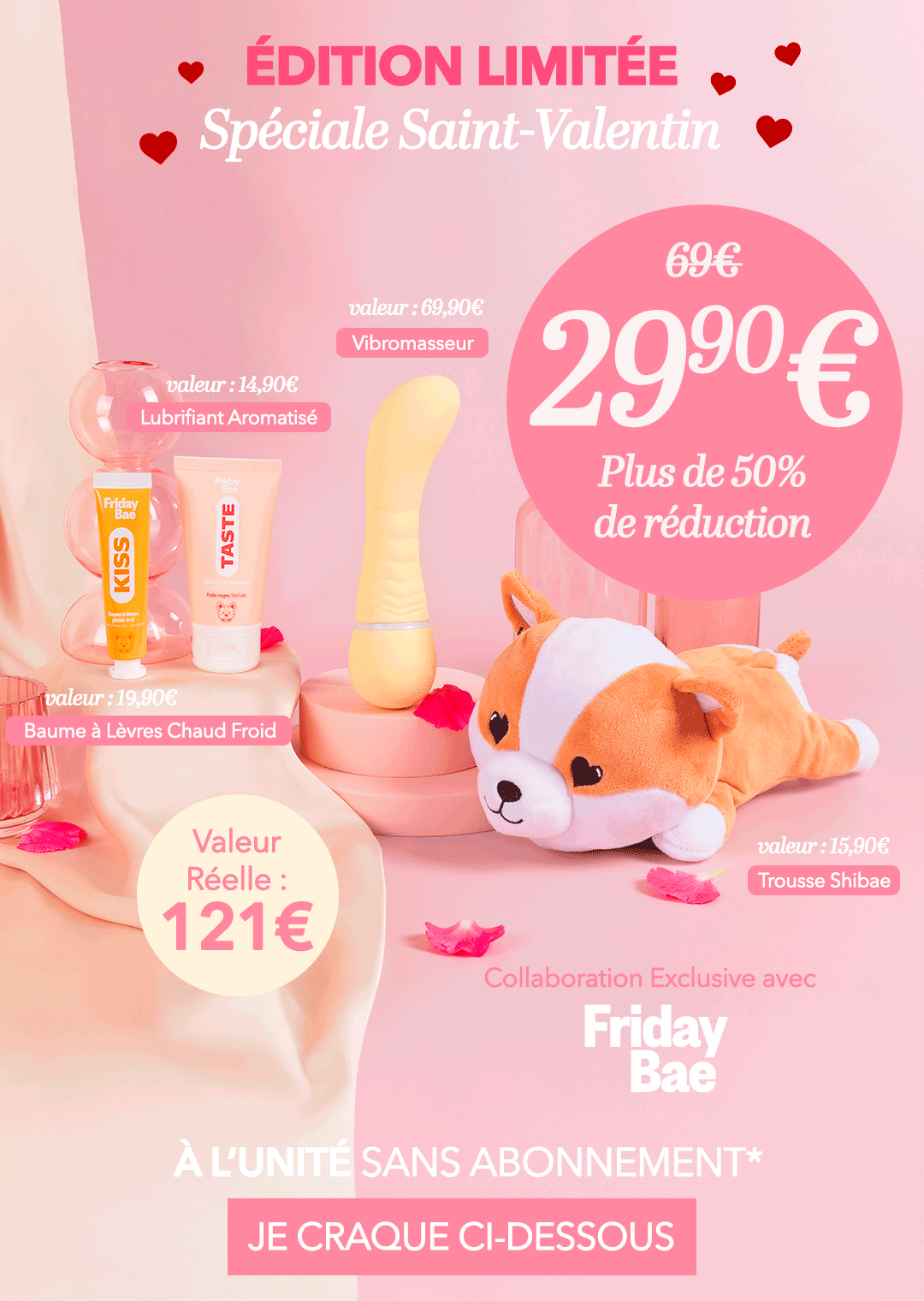 Une collaboration exclusive avec Friday Bae, spécialiste du plaisir féminin. 121€ de produits naturels, sûrs et de qualité !