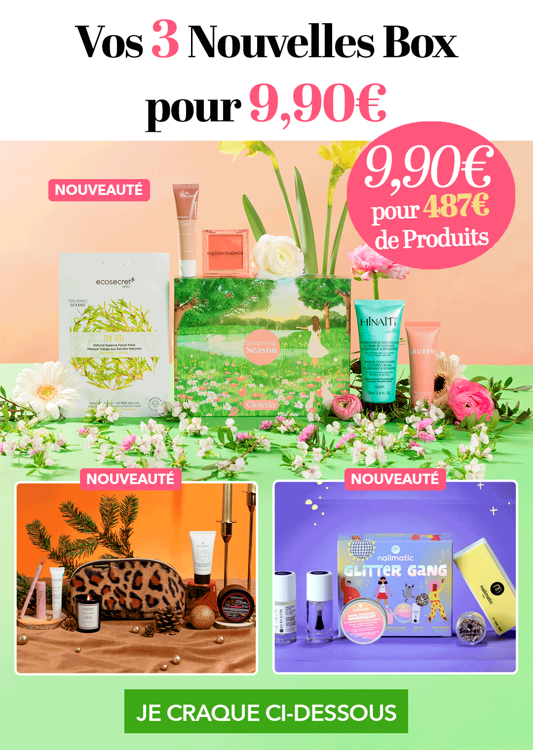 Profitez de vos 3 Nouvelles Box pour 9,90€, soit 487€ de produits pour 9,90€ !